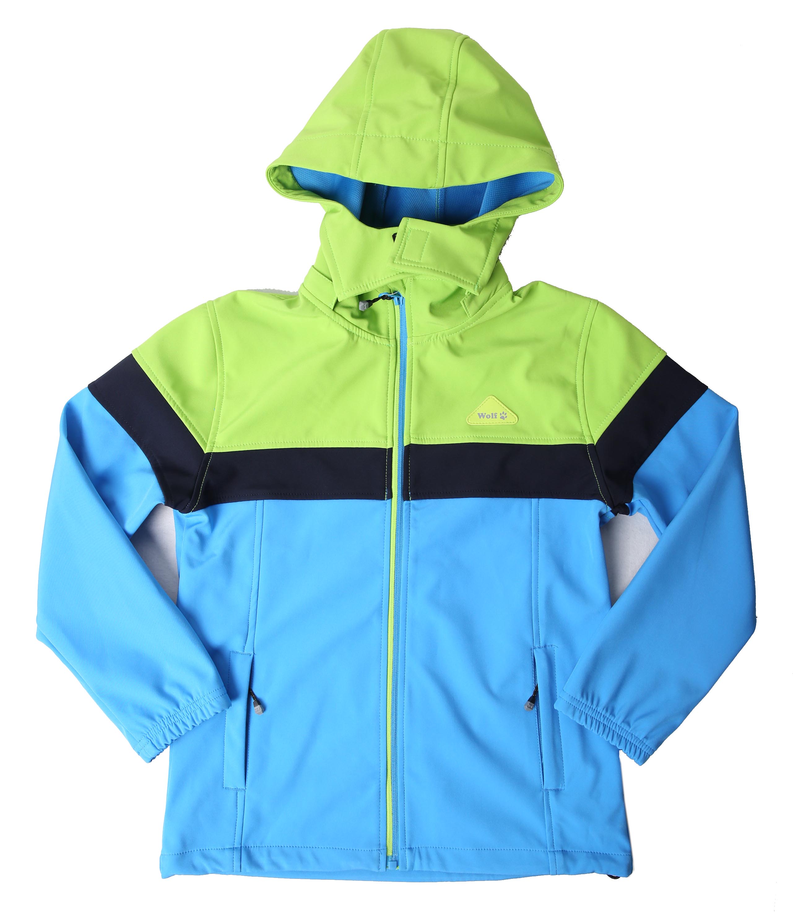 Slabá softshellová bunda ve velikosti 128-170 značky Wolf s kapucí.